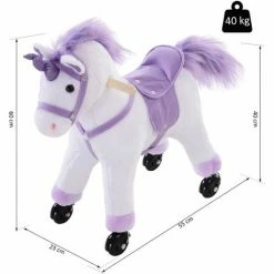 HOMCOM Kids Plush Ride-On Rocking Horse With Plush Toy Sound Handle Grip