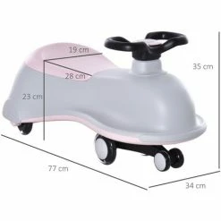 HOMCOM Ride On Wiggle Car W/LED Flashing Wheels For 2-4 Years Grey+Pink
