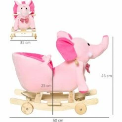 HOMCOM Baby Ride On Rocking Wooden Toy For Kids 2 In 1 Plush Elephant 32 Songs – Pink