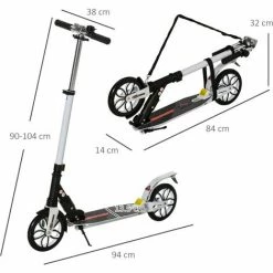 HOMCOM Foldable Kick Scooter W/ Adjustable Height, Dual Brake System, White