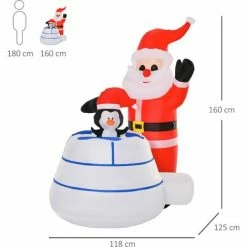 HOMCOM 1.6m Inflatable Santa Claus Penguin Igloo Xmas Decoration W/ Lights Indoor Outdoor