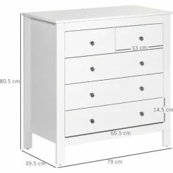 HOMCOM Modern Chest Of Drawers, 5 Drawer Unit Storage Chest For Bedroom