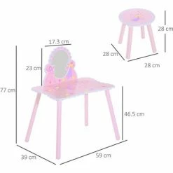 HOMCOM HOOMCOM Girls Kids Pink Dressing Table Make Up Play Set Desk Chair Mirror Wooden
