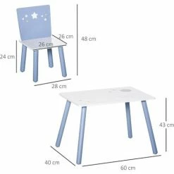 HOMCOM Kids Adjustable Table And Chair Set Blue And White For 1-4 Years Old