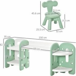 HOMCOM 4-Piece Set Kids Wood Table Chair Bench W/ Storage Function For 3 Years+