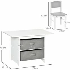 HOMCOM 3 Pcs Kids Table & Chairs Set Toddler Furniture W/ Storage Drawers White