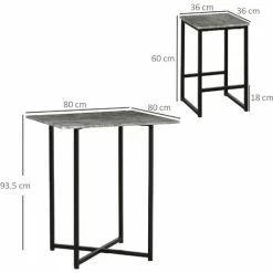 HOMCOM Concrete Effect Square Bar Table Set With Stools For 4 People Grey
