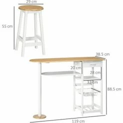 HOMCOM 3 Piece Bar Table Set With Drawer, Wire Basket And Wine Rack White