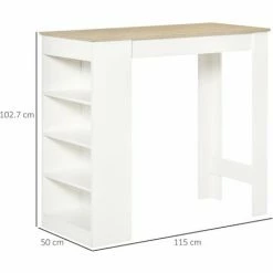 HOMCOM Bar Table Coffee Table Kitchen Dining Table With 4-Tier Shelf Natural