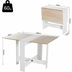 HOMCOM Wooden Folding Table Writing Desk Particle Board Oak, White Home Office
