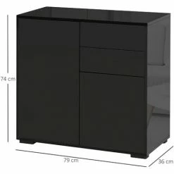 HOMCOM Side Cabinet With 2 Door Cabinet And 2 Drawer For Home Office Black