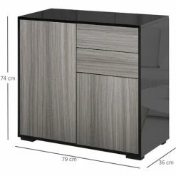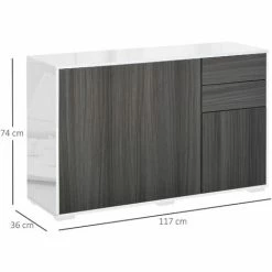 HOMCOM Side Cabinet With 2 Door Cabinet And 2 Drawer For Home Office Grey Black