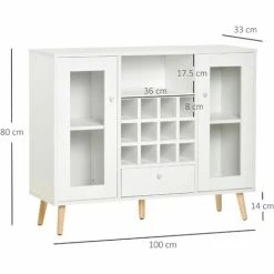 HOMCOM Sideboard Cabinet Kitchen Cupboard With Glass Doors, Drawer & Wine Rack