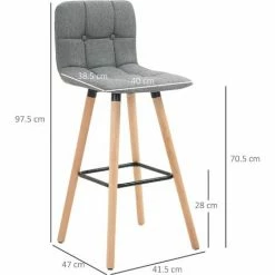 HOMCOM Bar Stool Set Of 2 Fabric Adjustable Height Counter Chairs Dark Grey