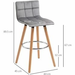 HOMCOM Bar Stool Set Of 2 Armless Upholstered Counter Height Bar Chairs Grey