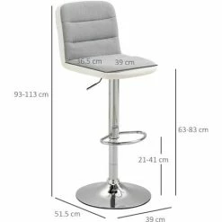 HOMCOM Bar Stool Set Of 2 Adjustable Height Upholstered Bar Chair Light Grey