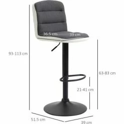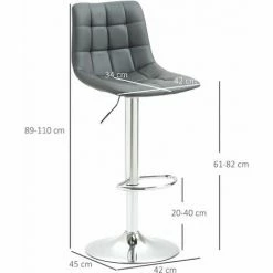 HOMCOM Bar Stool Set Of 2 Adjustable Height Upholstered Bar Chair Dark Grey