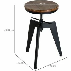 HOMCOM Bar Stool Swivel Chair Wooden Top Adjustable Height Brown Pine Wood Steel