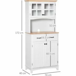 HOMCOM Coastal Kitchen Cupboard Storage Cabinet Unit For Dining Room, White