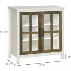 HOMCOM Kitchen Sideboard, Glass Door Storage Cabinet For Dining Room White