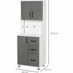 HOMCOM Modern Kitchen Cupboard Storage Organiser Microwave Cabinet Grey