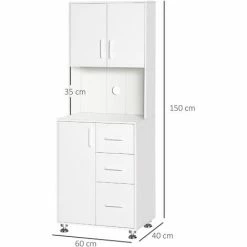 HOMCOM Modern Kitchen Cupboard Storage Organiser Microwave Cabinet White
