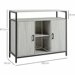 HOMCOM Modern Sideboard Storage Cabinet With Adjustable Shelves Light Grey