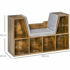 HOMCOM Bookcase Storage Reading Seat Unit Kids Adults Six Cubes Organiser Brown