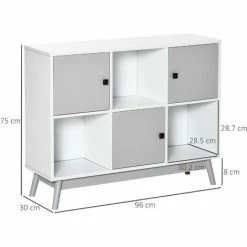 HOMCOM Bookcase, Display Cabinet With 6 Storage Cubes For Living Room Grey
