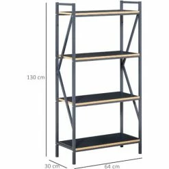 HOMCOM Industrial 4-Tier Bookcase Storage Organizer Metal Frame Display Rack