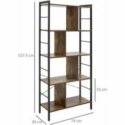 HOMCOM Industrial Style Storage Shelf, Bookcase, Bookshelf, Rustic Brown