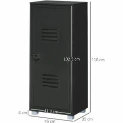 HOMCOM Modern 3-Tier Cabinet Storage Organizer With Louvred Metal Door Black