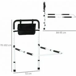 HOMCOM Adjustable Bed Assist Rail Grab Bar For Senior And Disabled White