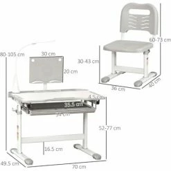 HOMCOM Kids Study Desk And Chair Set W/ USB Lamp, Adjustable Height – Grey