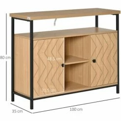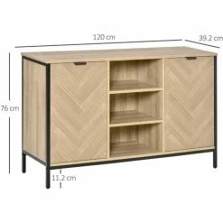 HOMCOM Sideboard Storage Cabinet With 2 Doors And Adjustable Shelves Oak Tone