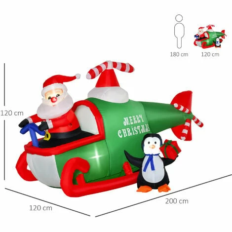 – Type: Christmas inflatable decoration with Santa Claus flying a plane and penguin holding a gift box