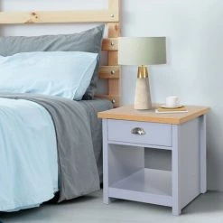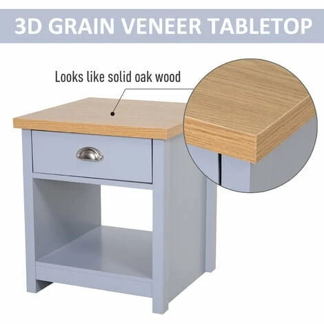 Blending a slight touch of rustic style with a generous amount of storage, you’ll absolutely love bringing this stand-out bedside table into your bedroom and living space. Using MDF for the body to ensure reliability and durability, it is crafted into a space saving design which features a smooth-sliding top drawer with a polished handle, an open bottom shelf for unrestricted storage and a large tabletop, which is covered in an oak-tone sticker for a classic look which is resistant to water and light scratch damage. With an elevated base for extra protection, it is finished with for non-slip feet to keep it in place. The ideal solution to a clean and tidy home.