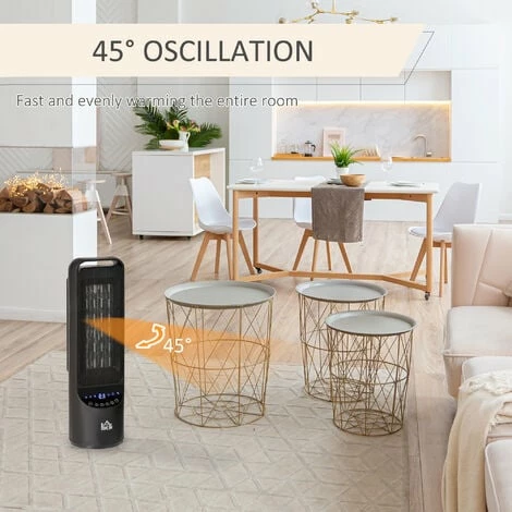 ● 45° oscillation to cover a larger area, getting the space heated quicker