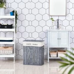 This laundry basket is an ideal solution for any home, keep all your cloths ready for the wash. Made with natural wood with an inner cloth lining for easy organization and is removable for washing. This basket comes with 2 sections for organizing different types of cloths from Lights to darks, the basket comes with handles so it can be easily be moved around, a great item to have in your home.