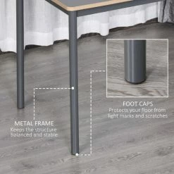 Take home dining back to basics with this table from HOMCOM. Its 120cm x 70cm sizing is spacious enough to enjoy food with a loved one or friend. Using metal for the legs and base frame, the structure is solid and tough to support up to 60kg – making it suitable for also working from and using it for display in the home. The table top is crafted from particle board to ensure a solid surface, finished in a mid-grey tone which is versatile to blend in with most homes. It’s finished with foot caps which protect your floor from light damage.