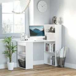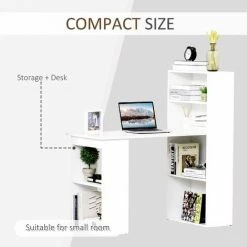 This HOMCOM computer desk bookshelf combo is an ideal workstation for your home, office, or dorm room. This compact desk helps you minimize distraction in a low-traffic area and focus more on your work. A multi-storage bookcase with shelving and cubby space provides you with ample storage for your books, photos, plants, and more. Durable particle board construction with a laminated finish offers years of reliable use. Best of all, it’s easy to assemble and easy to clean with just a damp cloth needed.