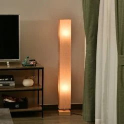 Create a beautiful and welcoming atmosphere in your personal space with our tall floor lamps from HOMCOM. The 120cm freestanding lamp is made of steel frame with oblong design for a solid structure. A fabric shade runs the whole length, cream white to allow light to seep out, without being too bright – perfect for daytimes and the evenings. The thick pine wood base keeps the floor light balance and adds a stylish finishing touch. Operated by mains, with a foot pedal to turn on and off easily.
