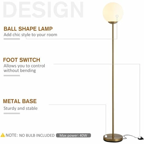Take luxe lighting to another dimension with this globe floor lamp from HOMCOM. Unique in design, it is formed of two parts: the metal pole and the lamp to keep it simple. The tall metal pole ensures a sturdy structure, with a thick round base which keeps the piece stable and upright. The round lamp provides a soft but powerful glow which is suitable for illuminating darker areas with ease. It’s finished with a 1.8m cable with a pedal switch to turn on and off easily.
