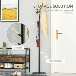 This handy home coat rack from HOMCOM is designed to hold your family’s coats and other outerwear, including accessories like hats, scarves and bags. Tall and slimline design to fit into your hallway or entryway with ease. It features six hooks for a generous amount of hanging space. Made from metal for a sturdy everyday structure, the base is large to keep the balance, finished with a varnished coating for light protection.