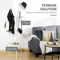 This functional coat rack from HOMCOM is designed to handle your entire family’s coats and other heavy garments including clothing accessories such as hats, scarves, and beanies. It combines a freestanding coat rack and a display stand in one easy to use unit. A compact and modern design helps you save in your hallway or entryway. What’s more, you can place it in any corner, wherever you want such as the bedroom, garage, or office. It’s made from sturdy and strong steel metal with 9 hooks and a bottom shelf for all your belongings.