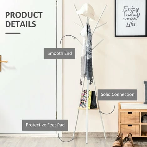 • 3 main branches with 9 hooks for coats, handbags, scarves, jackets and more
