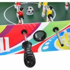 • A classic 3-4-3 formation and a goalie for each team • red and yellow team • Stainless steel rods hold the players, with foam handles on the end for comfort whilst playing