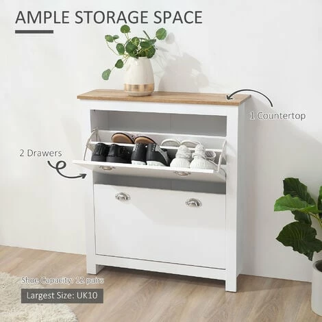 Too many shoes and nowhere to keep at home? Then it’s time to keep them organised – look to this HOMCOM cabinet. It comes with two tipping drawers
