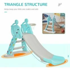 • Two-in-one function, consisting of a slide and a basketball hoop. • Made of environmentally friendly, odorless, and non-toxic HDPE. • Smooth and no sharp edges to avoid injuries. • Stable triangular overall design provides a stable base. • The extended tail cushion effectively protects the child’s buttocks and spine. • No tools required, easy to assemble. • Lightweight, compact, foldable, and easy to store