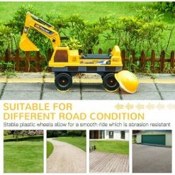 This multi-functional bulldozer toy with light by HOMCOM offers lots of fun pretend play construction and a wonderful moment between parents and kids. Move forward and backward, controllable digging bucket or grab bucket manually, flexible arms and joints allow kids to operate the bulldozer with ease. Digging bucket and grab bucket can be interchanged, so that children have a different experience. Large hiding under-seat storage space can store kids’ toy and other small items.